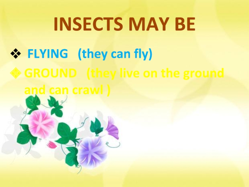 INSECTS MAY BE FLYING  (they can fly)GROUND  (they live on the ground and can crawl