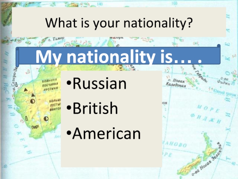 What is your nationality?RussianBritishAmericanMy nationality is… .