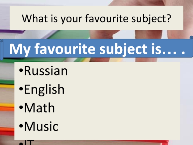 What is your favourite subject?RussianEnglishMathMusicITPEArtLiteratureMy favourite subject is… .