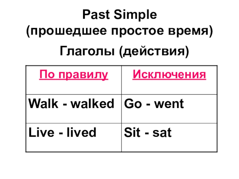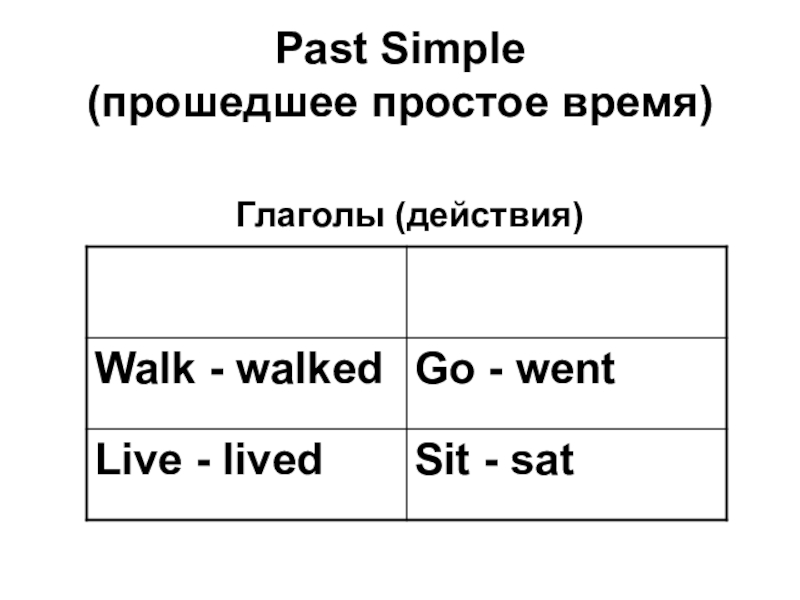 Past Simple  (прошедшее простое время)Глаголы (действия)