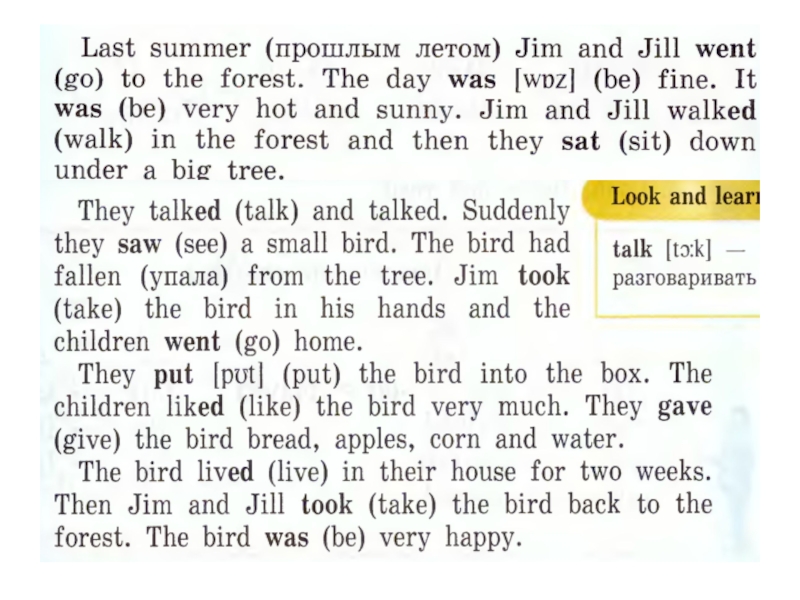 Презентация, доклад по английскому языку на тему Прошедшее простое время. Урок ОНЗ (4 класс)