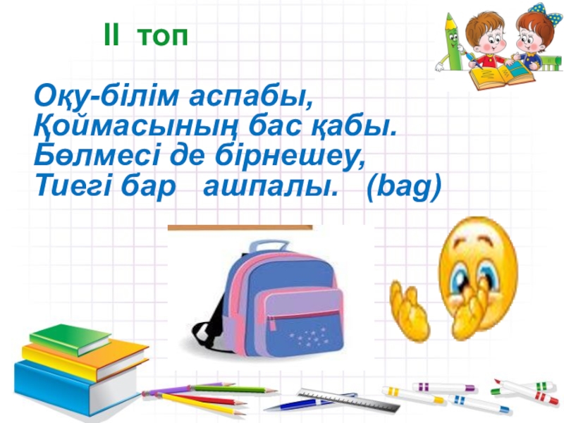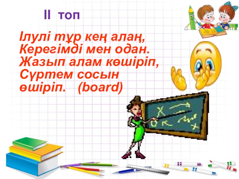 мақсаты: ойын арқылы, өтілген тақырыптар бойынша баланың ағылшын тіліне деген қызығушылығын арттыру.