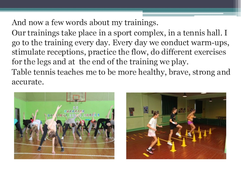 And now a few words about my trainings. Our trainings take place in a sport complex, in