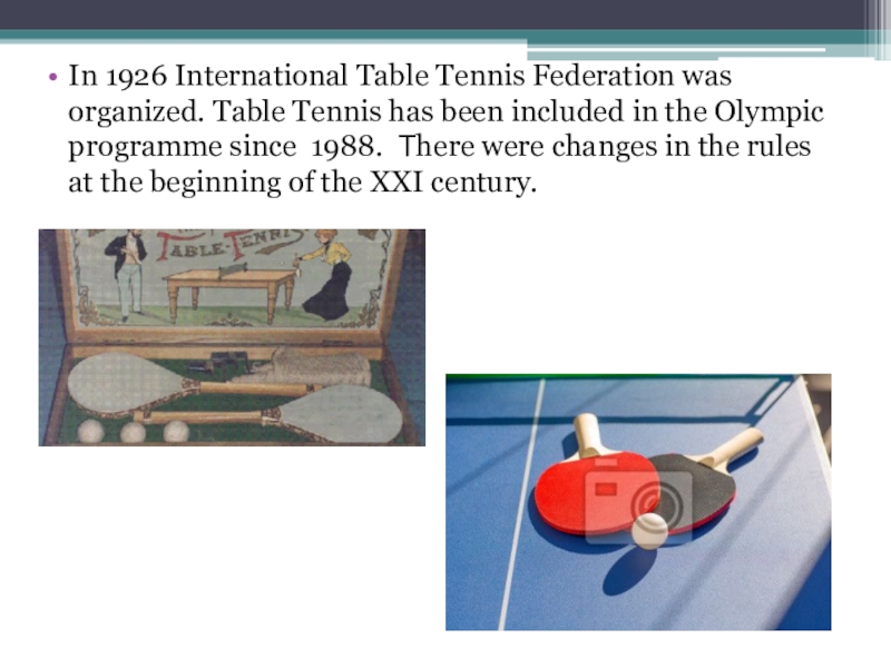 Слайд 3In 1926 International Table Tennis Federation was organized. Table Tennis has