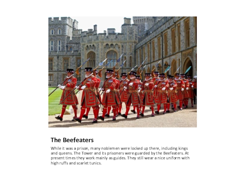 The BeefeatersWhile it was a prison, many noblemen were locked up there, including kings and queens. The