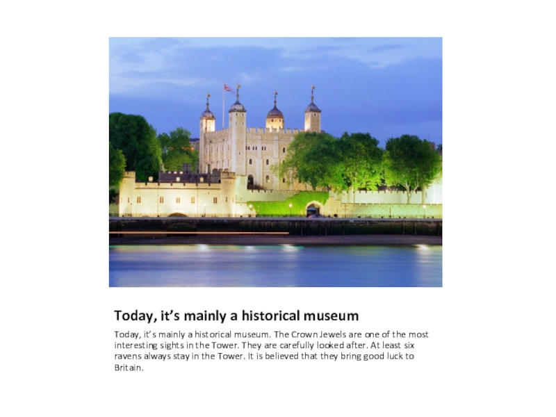 Today, it’s mainly a historical museumToday, it’s mainly a historical museum. The Crown Jewels are one of the