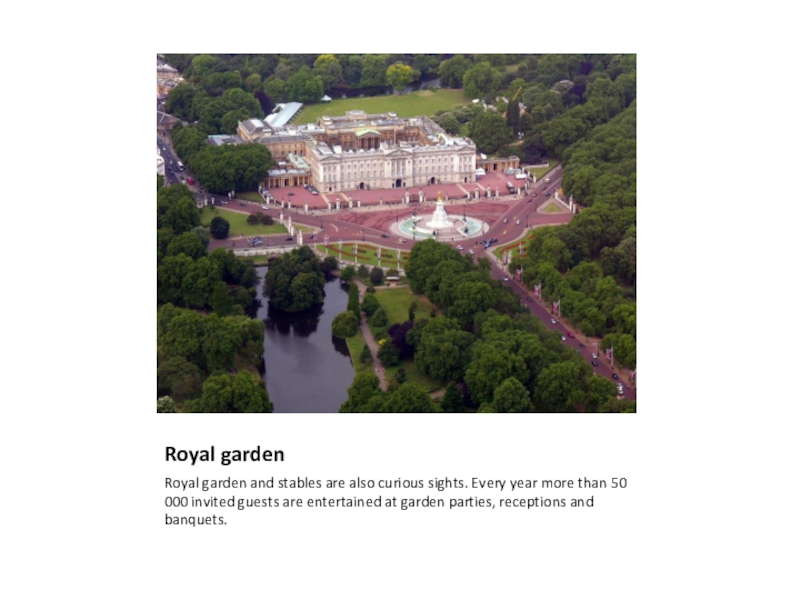 Royal gardenRoyal garden and stables are also curious sights. Every year more than 50 000 invited guests