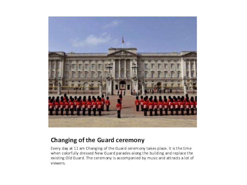 Changing of the Guard ceremonyEvery day at 11 am Changing of the Guard ceremony takes place. It