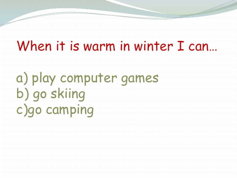 Слайд 7When it is warm in winter I can… a) play computer games b)