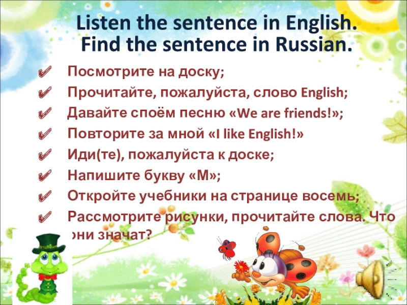 Listen the sentence in English.