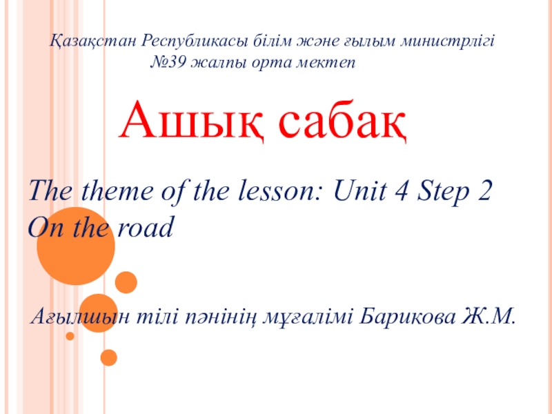 Ағылшын тілі пәнінің мұғалімі Барикова Ж.М.