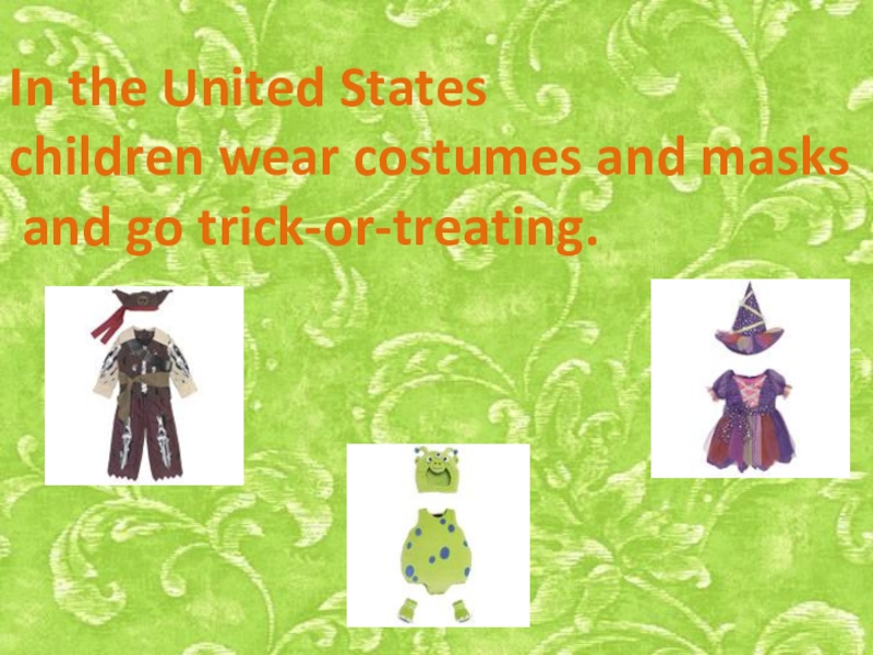 The main Halloween activity for Children is trick-or-treating. Children dress in costumes and masks and go from