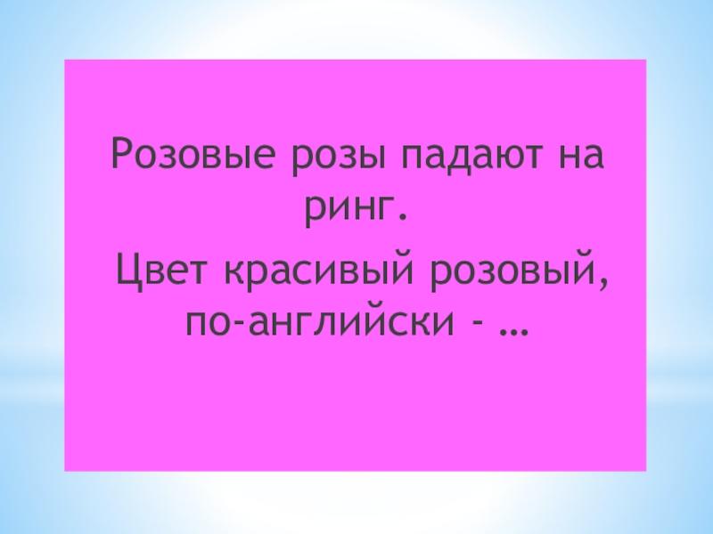 Розовые розы падают на ринг. Цвет красивый розовый, по-английски - …