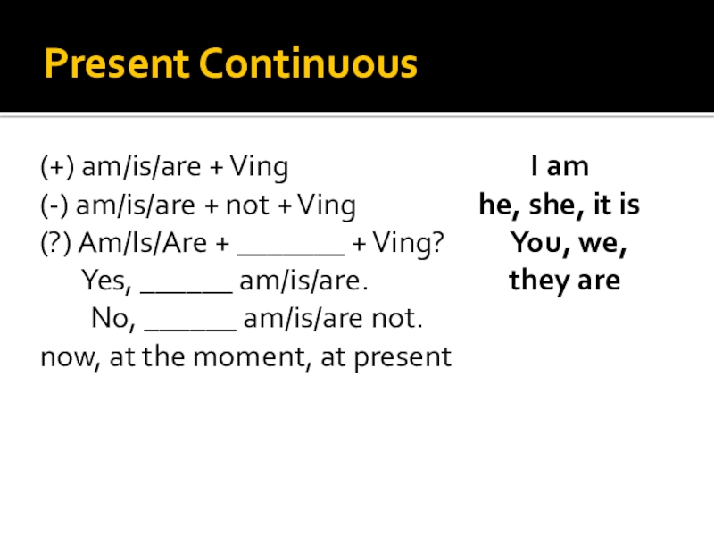 To be: (I)am, (he, she, it) is, (we, you, they) are