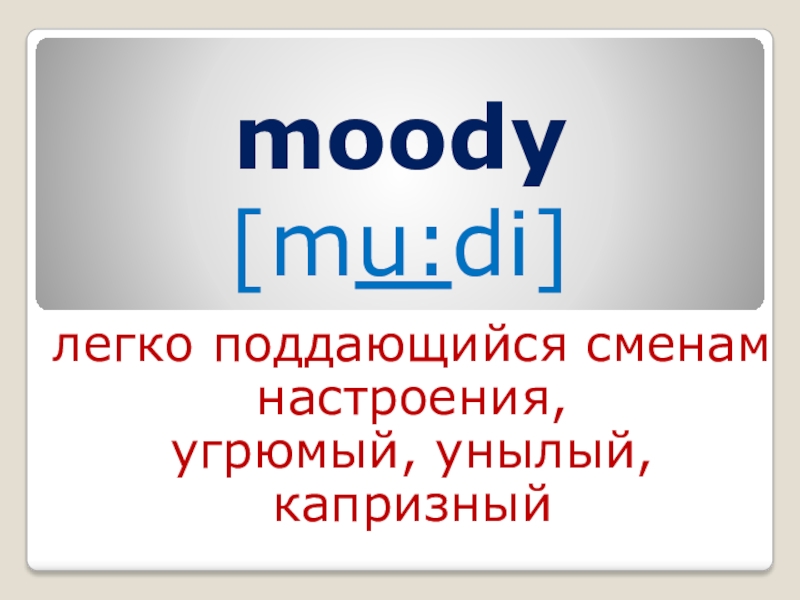 moody [mu:di]легко поддающийся сменам настроения, угрюмый, унылый, капризный