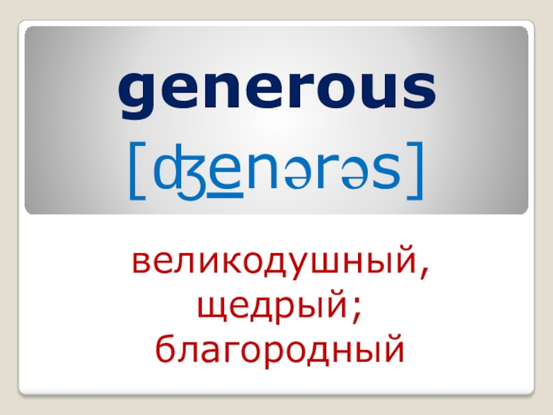 generous [ʤenərəs]великодушный, щедрый; благородный