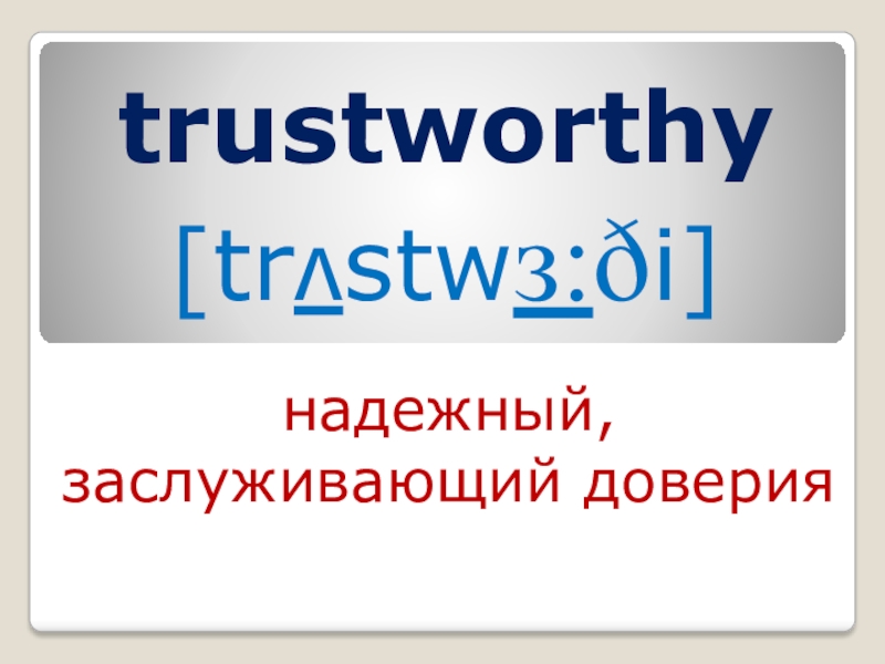 trustworthy [trʌstwз:ði]надежный, заслуживающий доверия