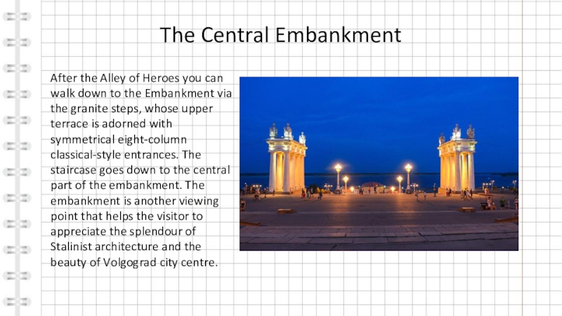 In May, 1985 on the other side of Pavlov House a new memorial wall was opened. It was erected by the youth of our city on the 40-th anniversary of Great Victory. There is an inscription here: “Labour and war deeds combined in this house. We`ll defend you, dear Stalingrad”.