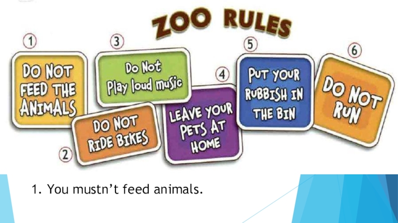 Слайд 101. You mustn’t feed animals.