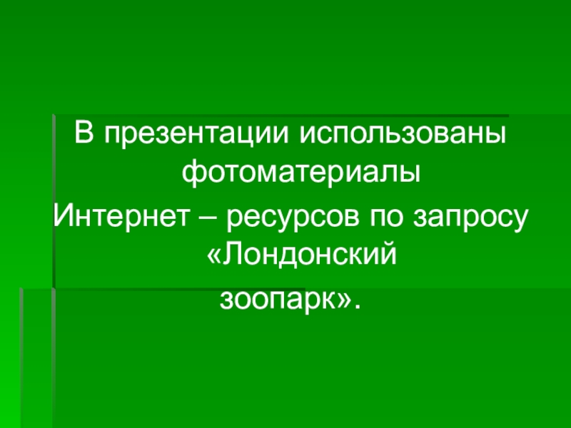 В презентации использованы фотоматериалыИнтернет – ресурсов по запросу «Лондонскийзоопарк».