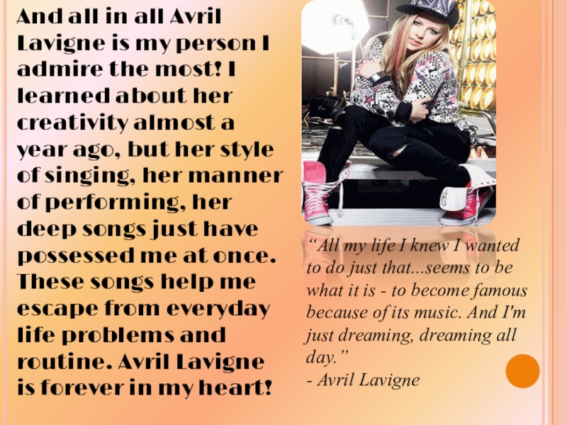 “All my life I knew I wanted to do just that...seems to be what it is - to become famous because of its music. And I'm just dreaming, dreaming all day.”