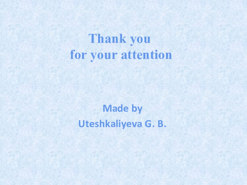 Thank you  for your attention Made byUteshkaliyeva G. B.