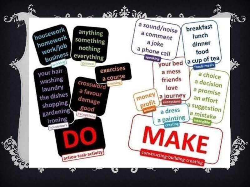 Презентация, доклад по английскому языку на тему глаголы do, make 10 класс