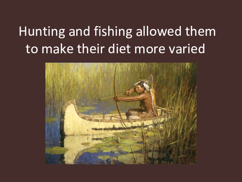 Слайд 15Hunting and fishing allowed them to make their diet more varied.