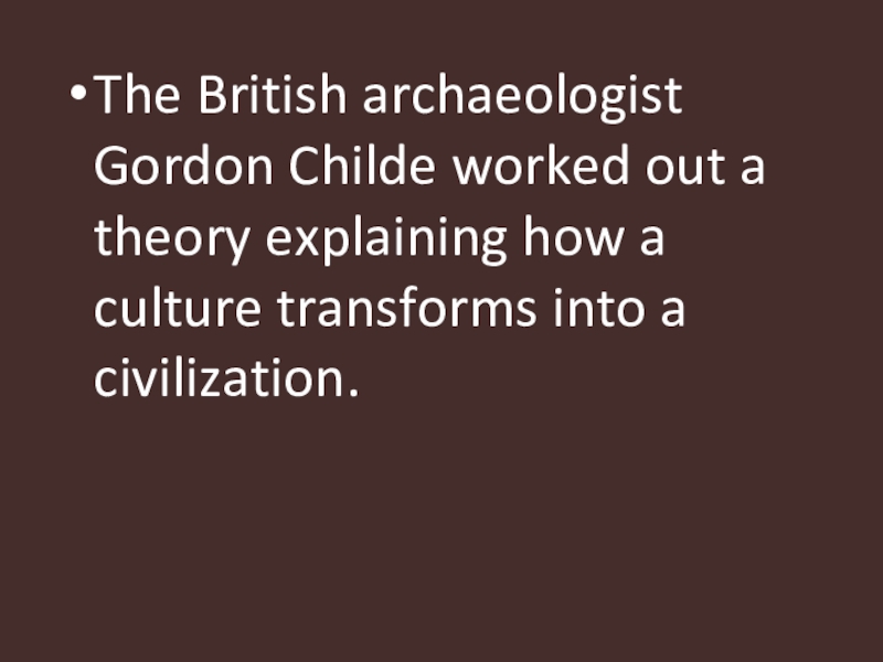 Слайд 2The British archaeologist Gordon Childe worked out a theory explaining how