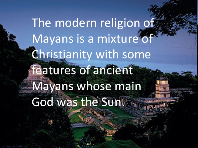 Слайд 20The modern religion of Mayans is a mixture of Christianity with