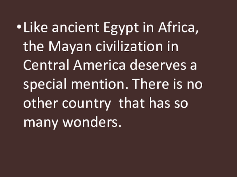 Слайд 5Like ancient Egypt in Africa, the Mayan civilization in Central America