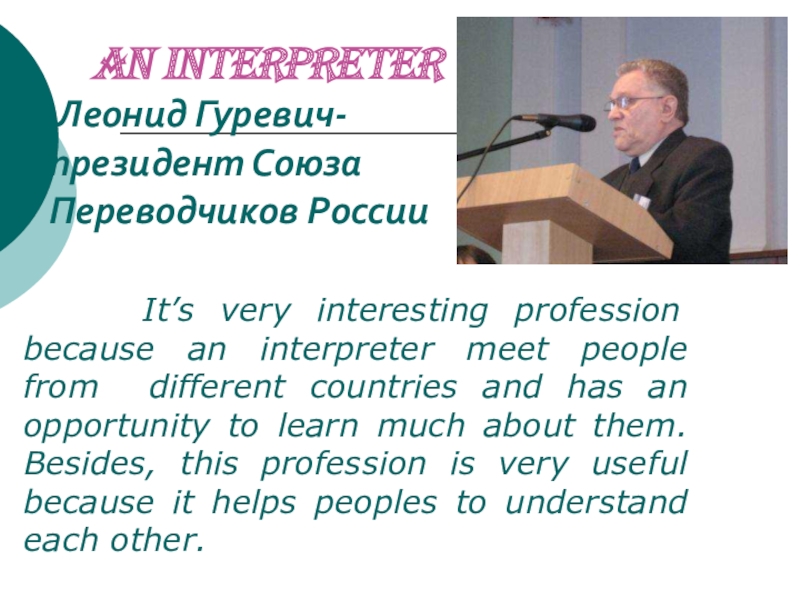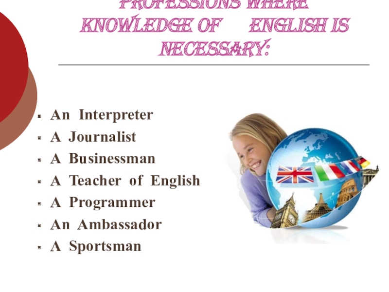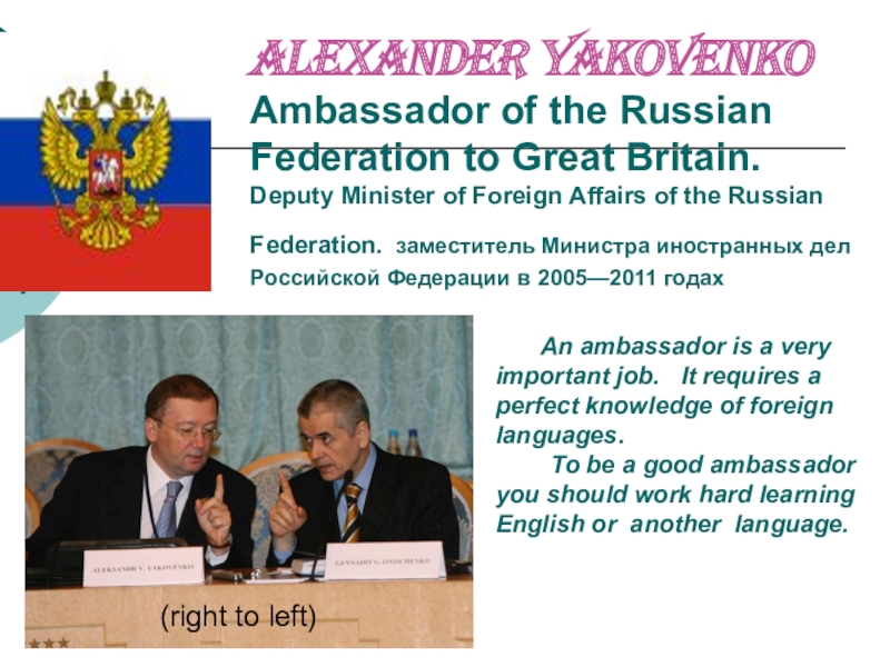An ambassador is a very important job. It requires a perfect knowledge of foreign languages.