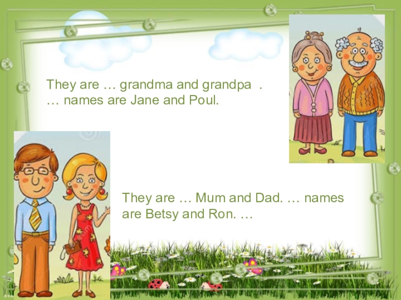 Слайд 6They are … grandma and grandpa . … names are Jane