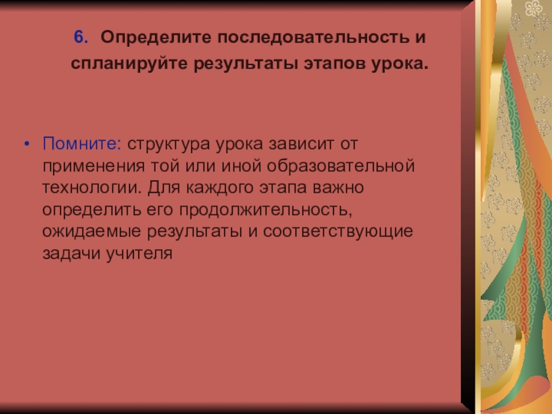 6. Определите последовательность и спланируйте результаты этапов урока.