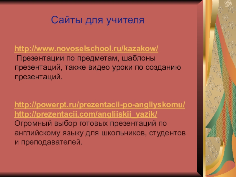 Огромный выбор готовых презентаций по английскому языку для школьников, студентов и преподавателей.