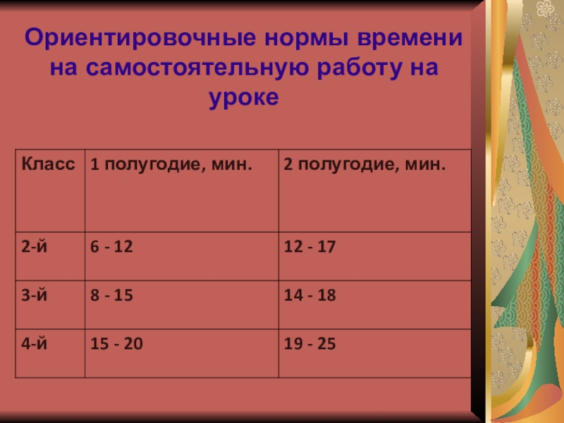 Ориентировочные нормы времени на самостоятельную работу на уроке