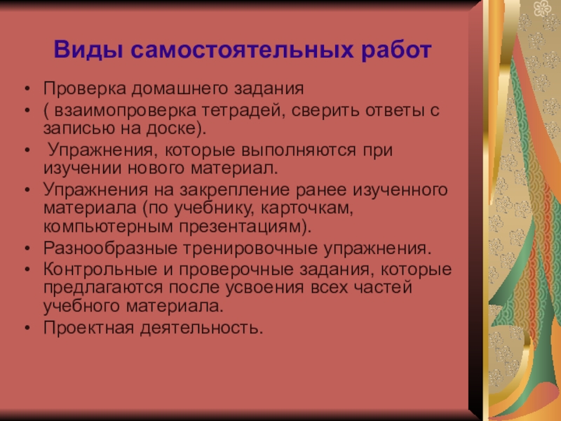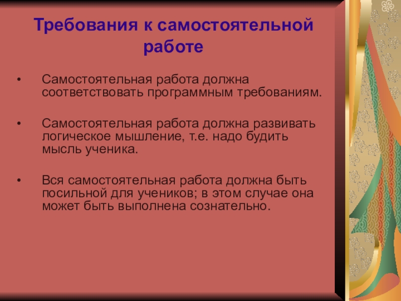 Вся самостоятельная работа должна быть посильной для учеников; в этом случае она может быть выполнена сознательно.