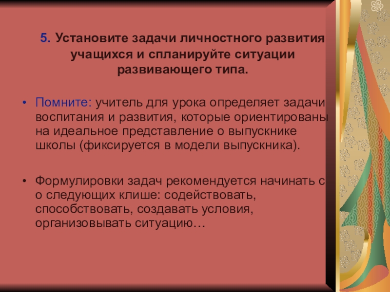 5. Установите задачи личностного развития учащихся и спланируйте ситуации развивающего типа.
