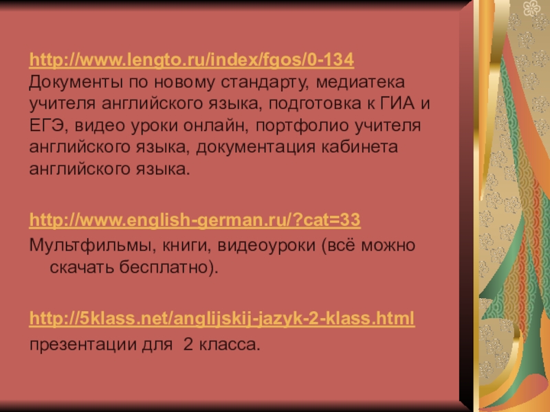 Документы по новому стандарту, медиатека учителя английского языка, подготовка к ГИА и ЕГЭ, видео уроки онлайн, портфолио учителя английского языка, документация кабинета английского языка.