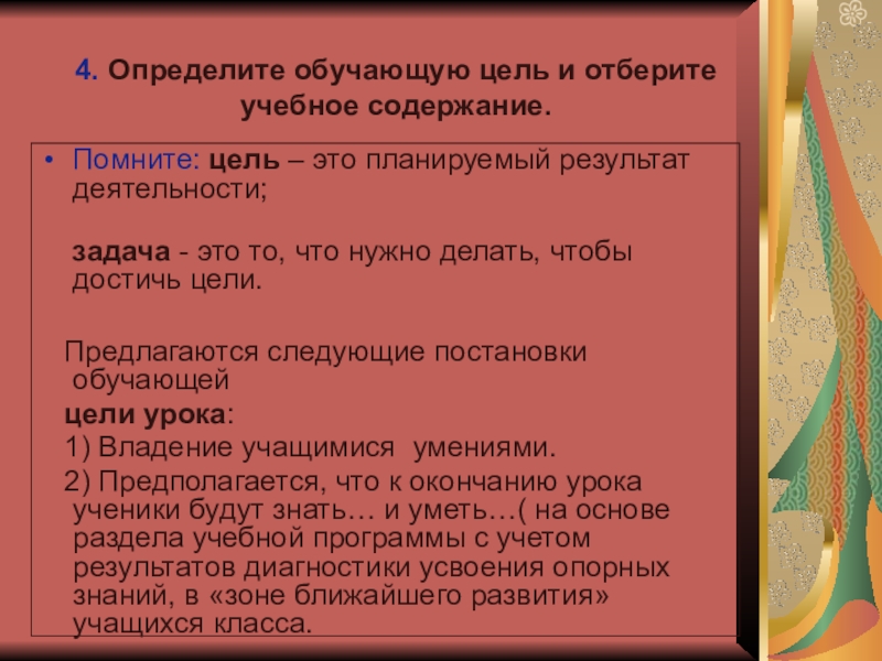 Слайд 134. Определите обучающую цель и отберите учебное содержание.