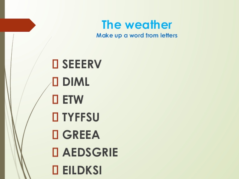 The weather Make up a word from lettersSEEERVDIMLETWTYFFSUGREEAAEDSGRIEEILDKSI