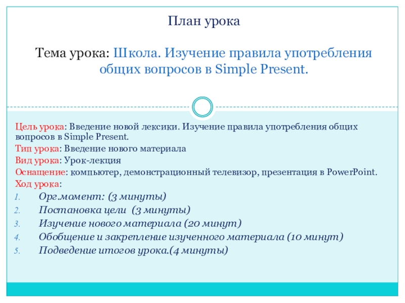 Тема урока: Школа. Изучение правила употребления общих вопросов в Simple Present.