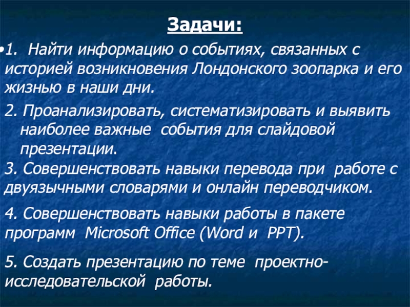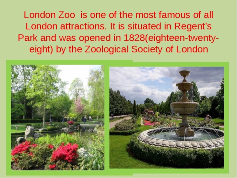 1. Найти информацию о событиях, связанных с историей возникновения Лондонского зоопарка и его жизнью в наши дни.