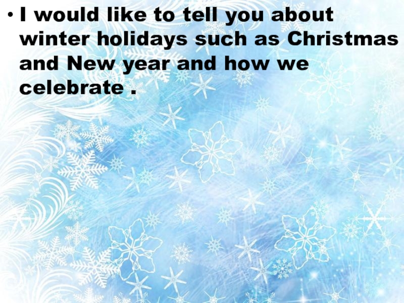I would like to tell you about winter holidays such as Christmas and New year and how we celebrate .