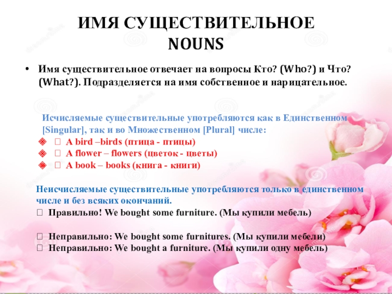 A flower – flowers (цветок - цветы)