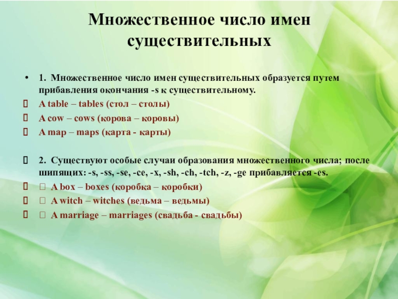 1. Множественное число имен существительных образуется путем прибавления