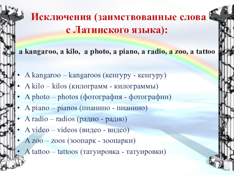 Слайд 7 Исключения (заимствованные слова
