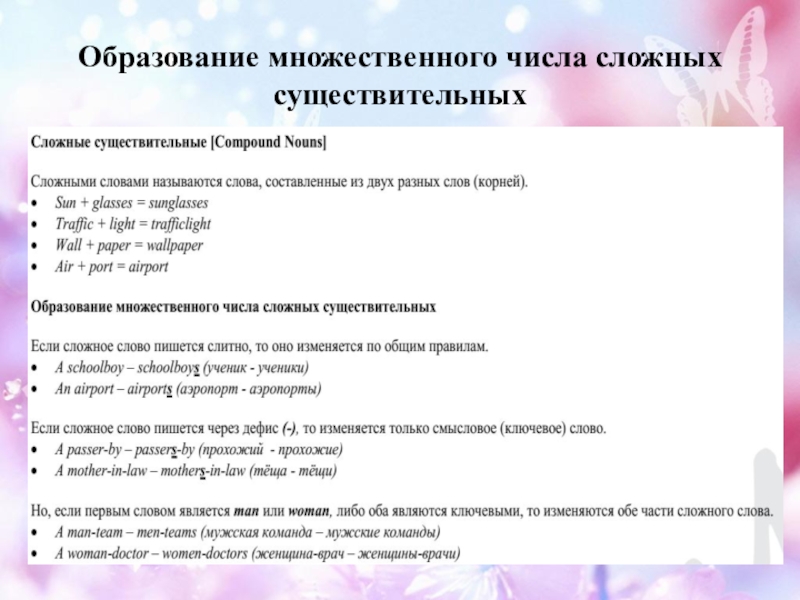Слайд 12Образование множественного числа сложных существительных