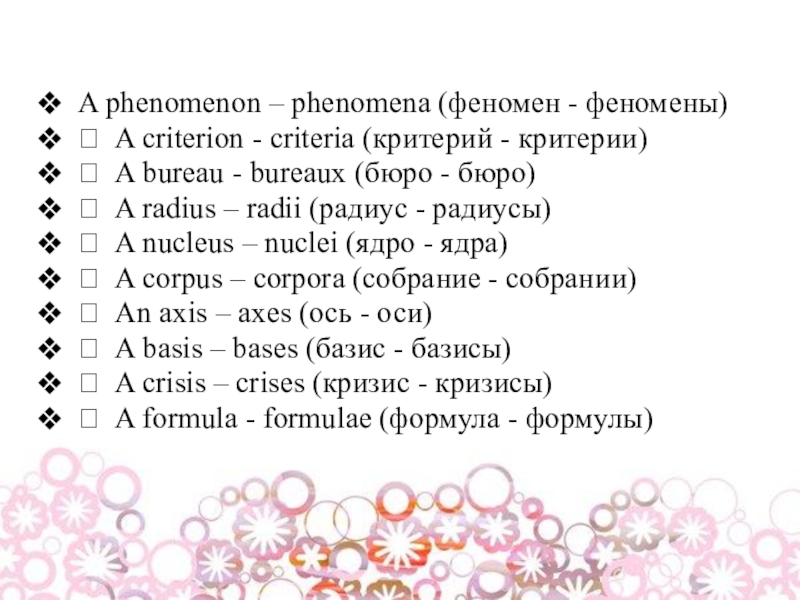 Слайд 10A phenomenon – phenomena (феномен - феномены)