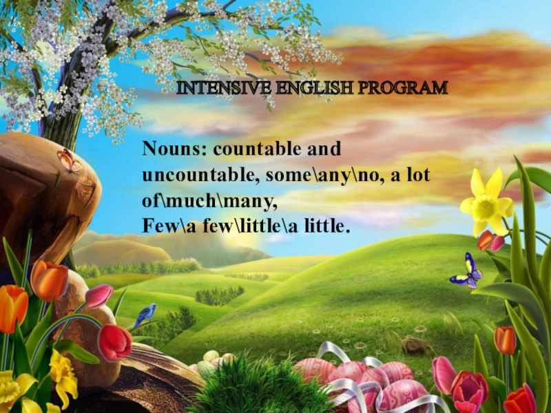 Слайд 1Nouns: countable and uncountable, some\any\no, a lot of\much\many,